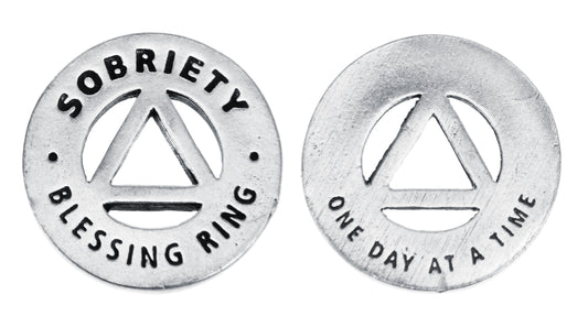 "Sobriety Blessing Ring – One Day at a Time | Handcrafted Pewter Recovery Gift"